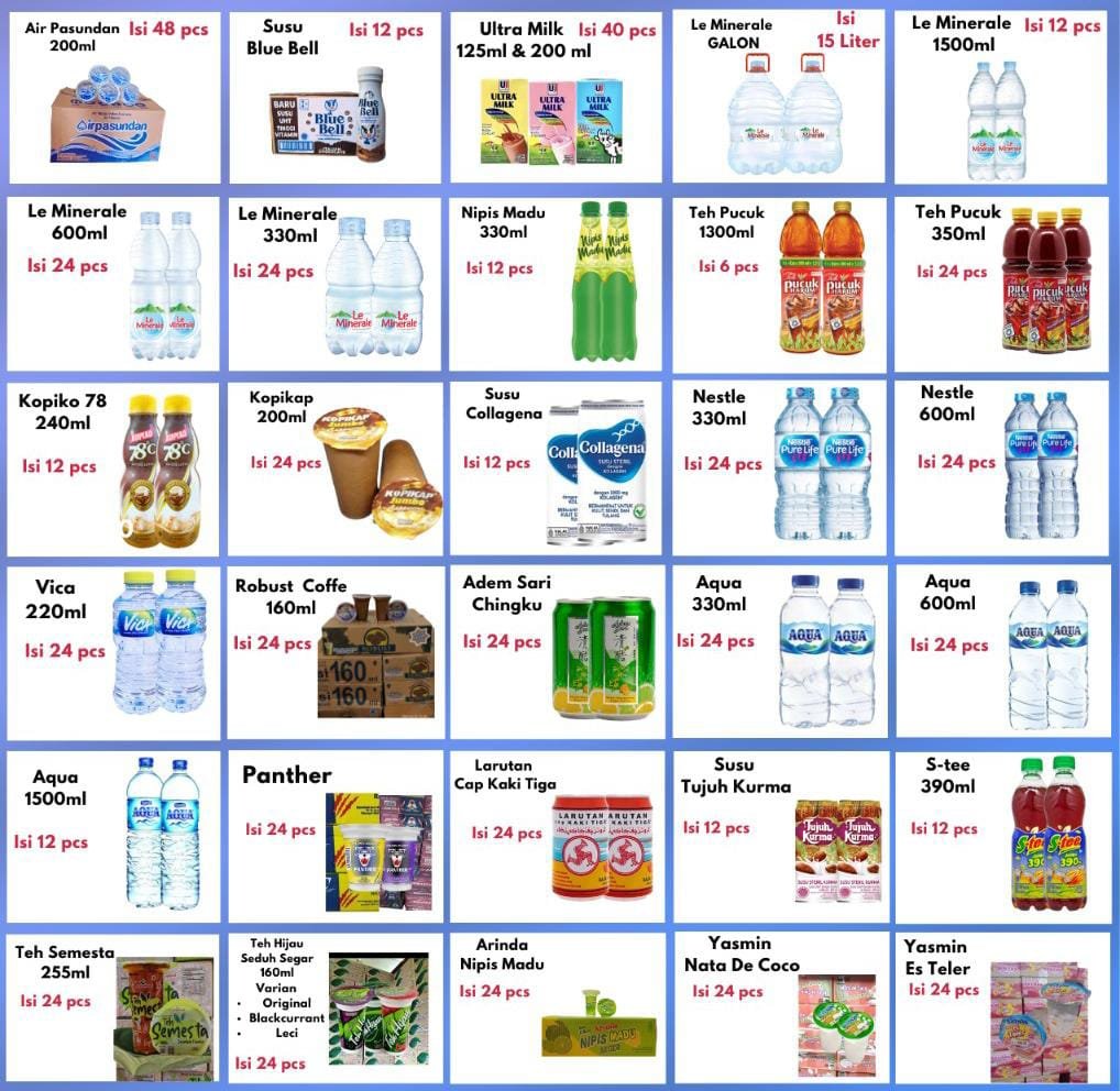 Minimal pemesanan adalah 5 dus, dan pembeli dapat mencampur merek/varian sesuai kebutuhan.