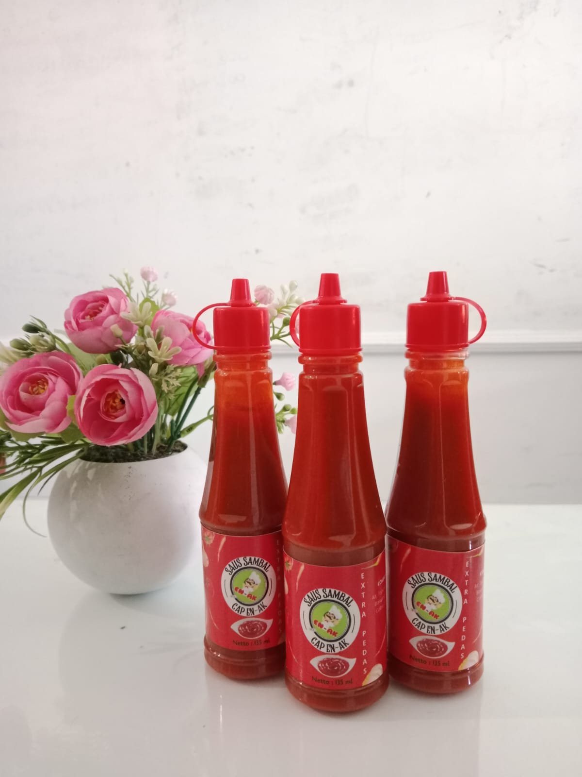 Saus Sambal CAP EN-AK memberikan sensasi pedas nikmat yang pas di lidah, menjadikannya pelengkap sempurna untuk segala jenis makanan. Dibuat dari cabai pilihan dan bahan-bahan berkualitas, saus sambal ini memiliki rasa pedas yang seimbang dengan sedikit sentuhan manis, menciptakan rasa yang menggugah selera di setiap tetesnya. Dengan tekstur yang halus dan warna merah cerah yang menggoda, saus ini cocok dinikmati bersama gorengan, mie, ayam goreng, atau makanan favorit lainnya.